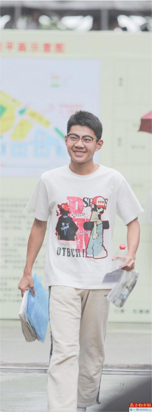 数学检验完毕,考生带着笑容走出考场。